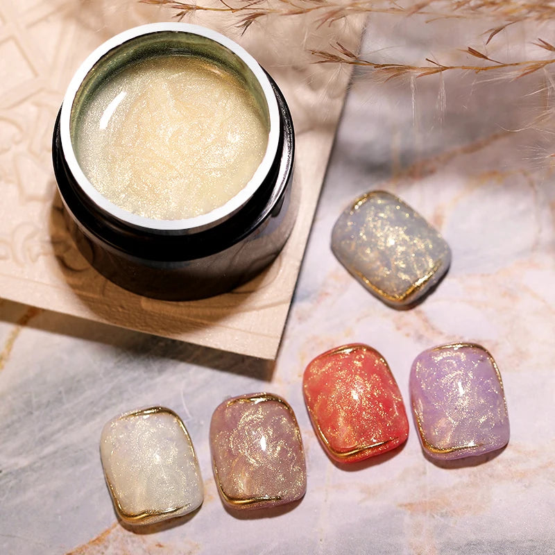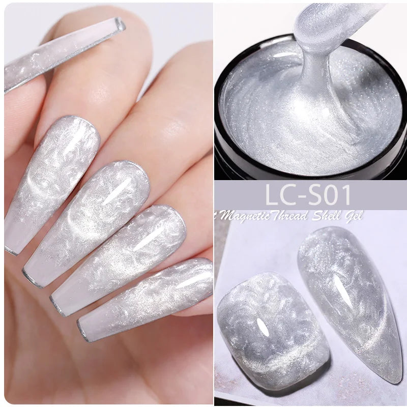 LILYCUTE 7ML 3D Auroral yellow Pearl Shell Thread Gel Nail Polish Shiny Glitter Semi Permanent